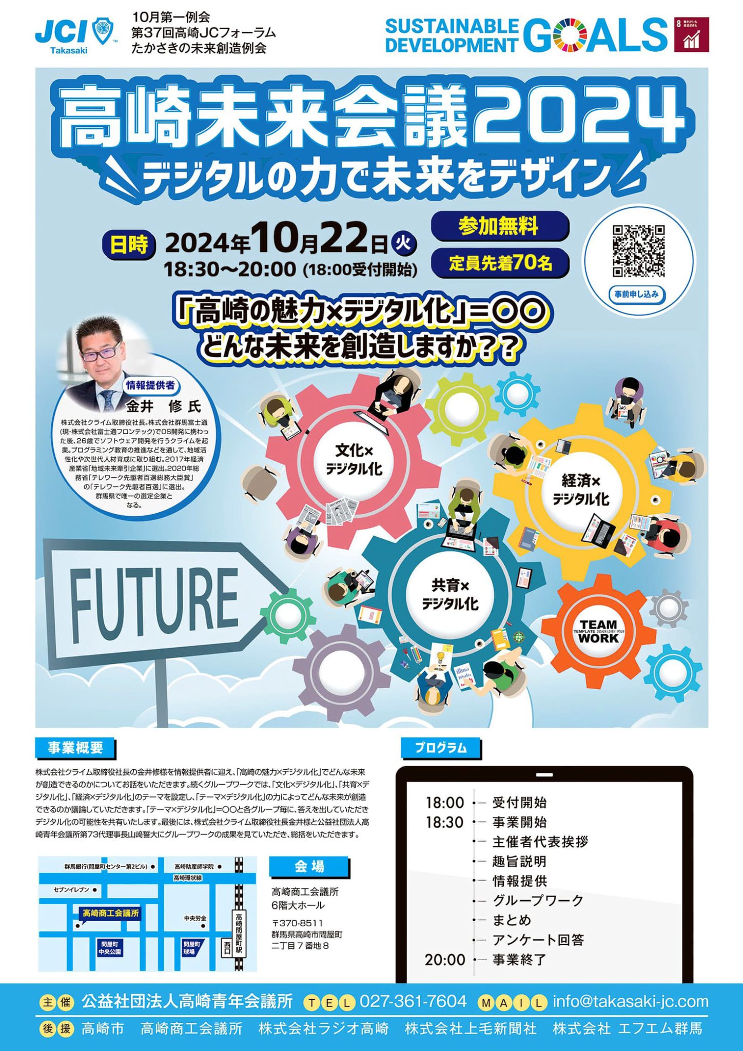 10月第一例会第37回高崎JCフォーラムたかさきの未来創造例会のご案内 (2024/10/09)